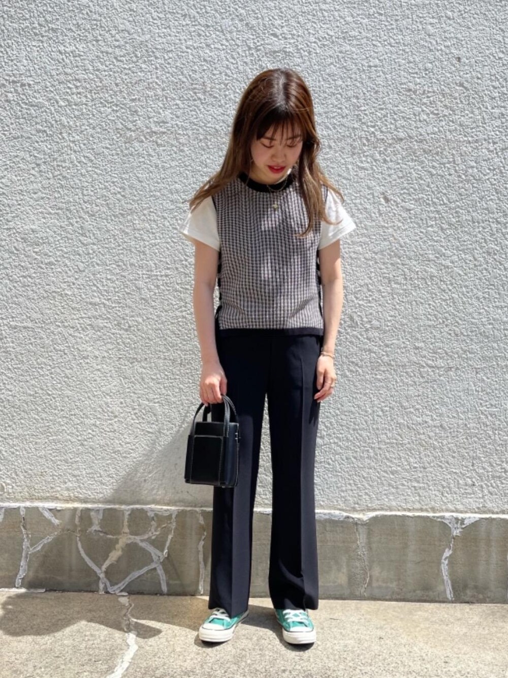 全体的にシンプルですが足元にワンポイント色を入れるのもオススメです!