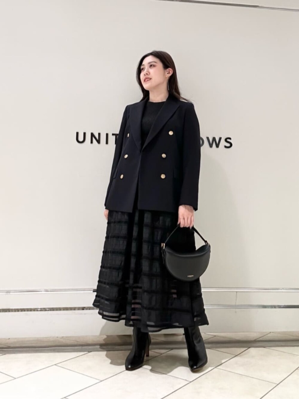 【身長】158㎝ 【普段サイズ】 ジャケット : 38 ワンピース : 38 シューズ : 24.5㎝、37h 【サイズ感、着心地】 ●ジャケット (サイズ感 : 標準) 細すぎない作りのジャケットです。 セットインで標準的なサイズ感です。 ●ワンピース (サイズ感 : 標準) 伸縮性があります。 軽やかな素材のワンピースです。 ●シューズ (サイズ感 : 標準) 細めのヒールですが安定感があり履きやすいブーツで、幅広いシーンで活躍してくれます。大きめの作りでは無いので、普段のサイズがおすすめです。 【コーディネートのポイント】 ブレザーとレザー小物でシャープな印象に仕上げました。