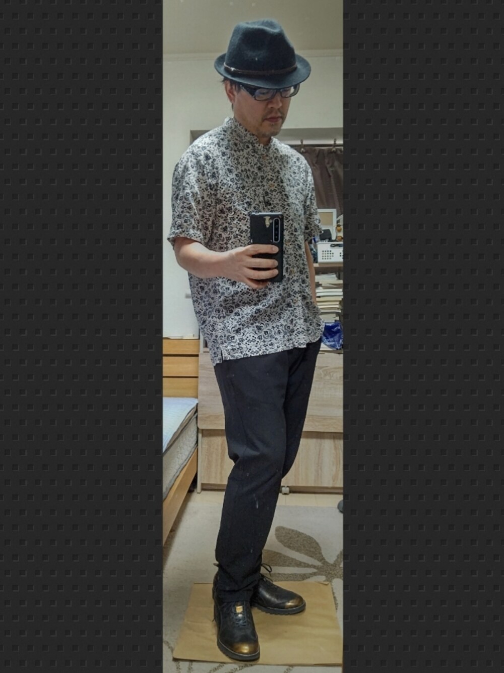 おはようございます!YMです。 ご訪問ありがとうございます🎵 本日のテーマ 【#モード】 古着を使ったモノトーンSTYLE。 イメージ 【綺麗め柄シャツコーデ】♪ +--------------------------------------------------------+ 【着用アイテム】 ◆Amina Collection ハット ◆NoBrand古着 総柄シルクシャツ ◆John bull テーパードパンツ ◆Onitsuka Tiger レザースニーカー +--------------------------------------------------------+ 興味湧いた方、気になった方 いいね👍 コメント💬 フォロー🌟 よろしくお願いします