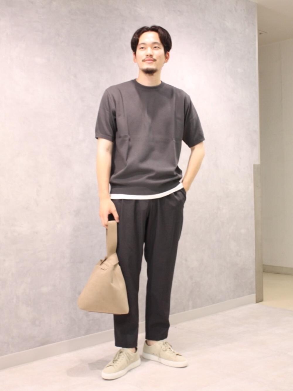 【身長】 178cm 水泳歴20年上半身がっちりめ 【普段サイズ】 トップスXL ボトムスL スニーカー28.0cm 【サイズ感】 全て標準的なサイズ感です。 【素材感】 ニットはコットンとアクリルの素材でサラッとしています。部屋干しでも乾くのが早そうなので、梅雨時期にもお勧めです。 パンツはリネンとポリエステルで、こちらもドライで軽いなタッチが特徴です。 【コーディネートポイント】 全体をグレーとベージュでまとめて柔らかくリラックスした印象にしました。※着用しているシューズはPOP UPの限定色となります。 【hALON モアバリエーションイベント】 開催期間 5/21(金)から5/30(日) 開催店舗 ユナイテッドアローズ新宿店 営業時間11時から20時 電話番号03-5321-7531 イベント期間中であれば通販も承りますので、上記までお問い合わせ下さい。