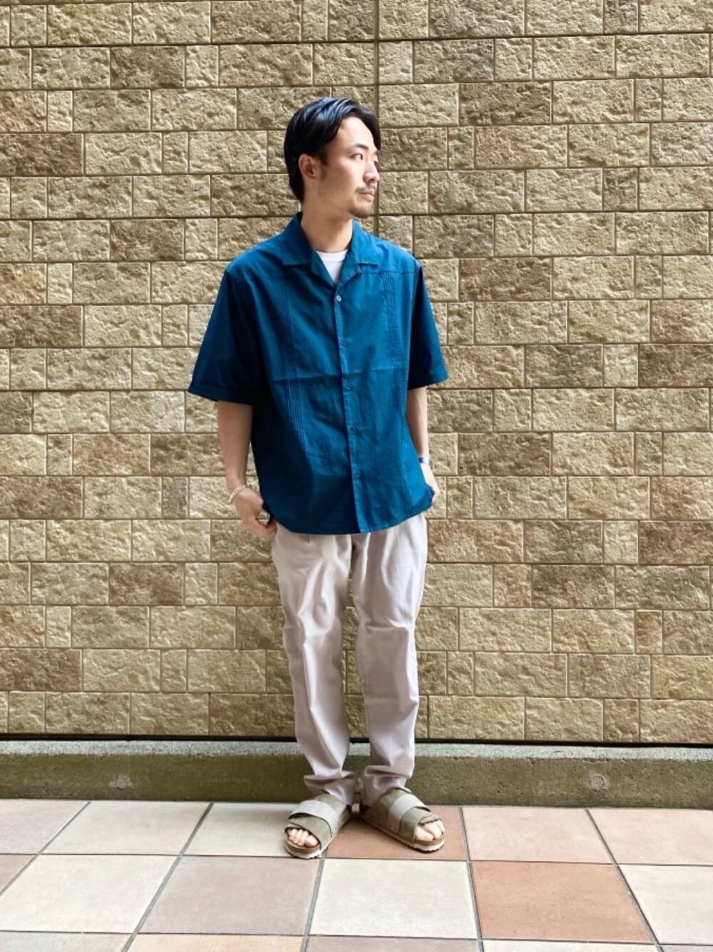●年齢:20代後半 ●身長:165cm ●普段サイズ:トップスSorM/ボトムスSorM/シューズ 26.5cm 【サイズ感】 トップス:ややゆったり ボトムス:ややゆったり シューズ:標準的 【素材感】 トップス:やや光沢感があります。 パンツ:天然素材のような生地。シワになりにくい素材。 【着心地】 トップス:軽くて薄手で楽に着れます。 パンツ:ドライな手触りで夏場でも快適です。 【コーディネートポイント】 開襟シャツをメインにパンツ、サンダルも夏らしいアイテムで合わせました。 パンツとサンダルは明るめの色を選びコーディネートに軽さを出しています。 シャツはゆったり着たかったためサイズを上げております。