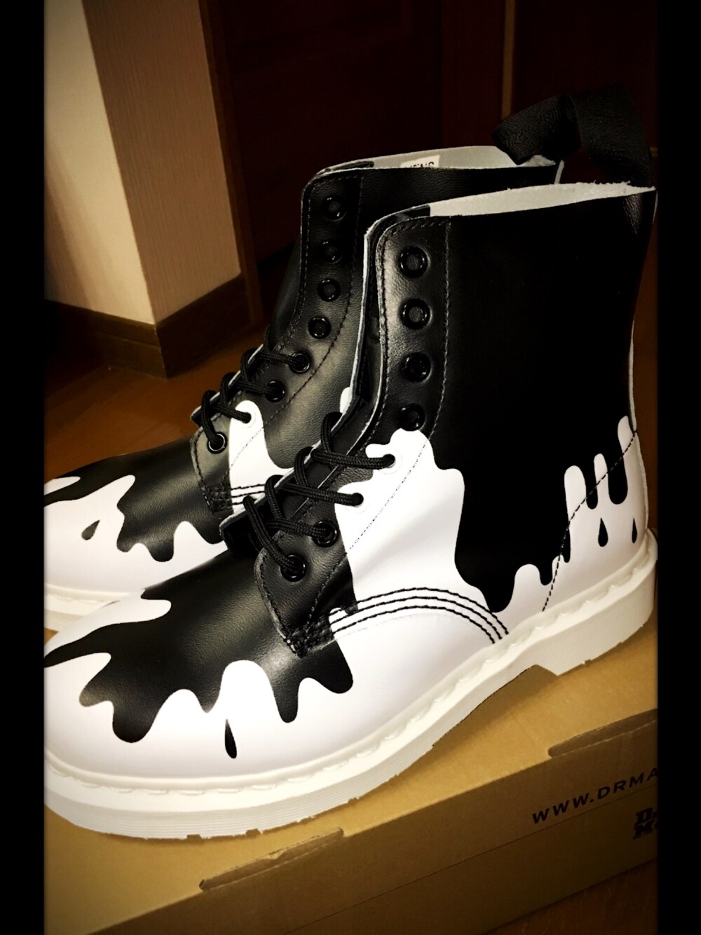 \( ‘ω’)/ウオオアアアアアアアアアアアアアアアアアアアアアアーッッッッッッッッッッッッッッ!! 届いたーーーーーっ!!! マーチンブーツ!! ペンキ被った様なカラーたまらんですね( *˙ω˙*)و グッ! ド田舎の為マーチンなんて取り扱ってる店舗はほぼございませんので通販サイトより購入しましたが、見た時にまさに一目惚れな1品でございましたモジ(((´ω` *)(* ´ω`)))モジ