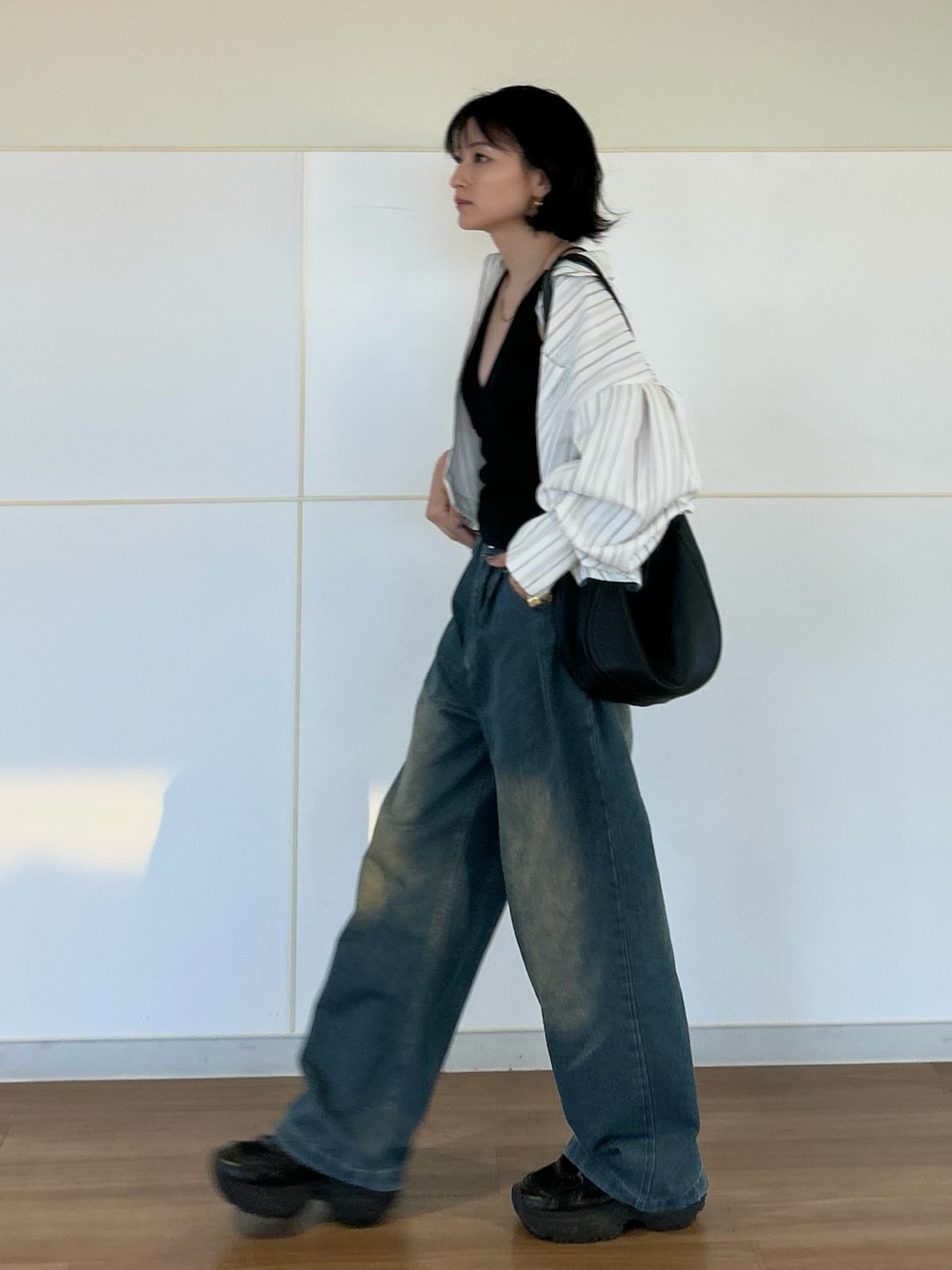 maiのキャミソール「V neck back cross rib camisole with cups / 深Vネック バッククロス カップ付きリブキャミソール」を使ったコーディネート