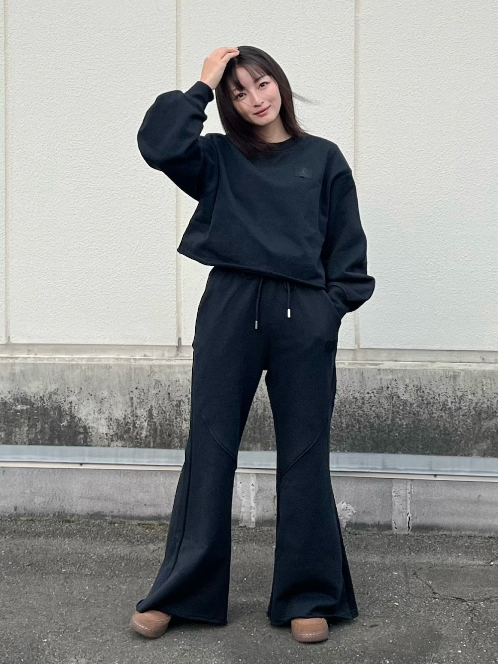 maiのスウェット「ジョーダン フライト フリース ウィメンズ モッドクロップ クルーネック スウェットシャツ / Jordan Flight Fleece Women's Mod-Crop Crew-Neck Sweatshirt IF1007-010 Black」を使ったコーディネート