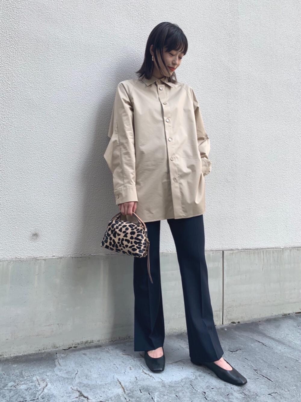 バックスタイルに存在感のあるコーディネートしました。アクセントに柄のバッグを取り入れたのがポイントです。