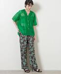 (身長) 163cm (普段サイズ) トップス:38 /ボトムス:38 /シューズ:24.5cm (サイズ感・着心地) トップス:タイトなシルエットで体のラインがしっかりと出ます。 パンツ:裏地がついているので透け感なくご着用いただけます。ストレートのシルエットになります。 (コーディネートポイント) 柄物とトップスの色を合わせて夏らしいコーディネートに。小物は落ち着いた色味にすることで大人な印象になります。