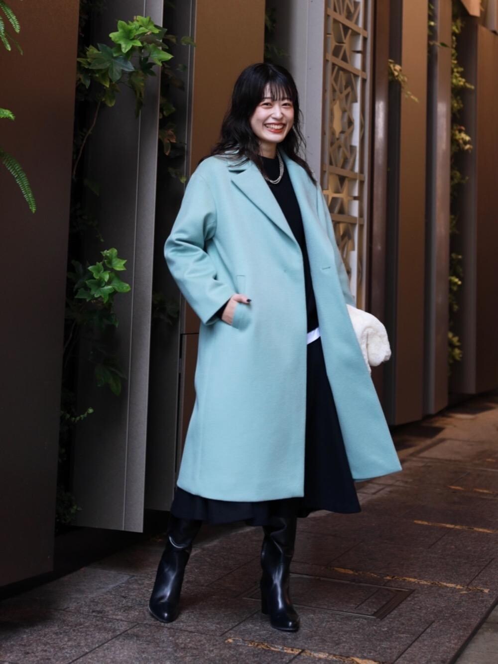 (身長) 163cm (普段サイズ) トップス:38 /ボトムス:38 /シューズ:24.5cm (サイズ感・着心地) アウター:ゆったりとしていて38だと少しオーバーサイズになります。 ニット:オーバーサイズでゆったりとしたサイズ感です。 スカート:普段は38ですが、ロングブーツと合わせたかったので36にしました。丈は少し短いです。 (コーディネートポイント) アウターの発色をより引き立たせるためにアウター以外はモノトーンで合わせました。 今年らしいバランス感がポイントです。