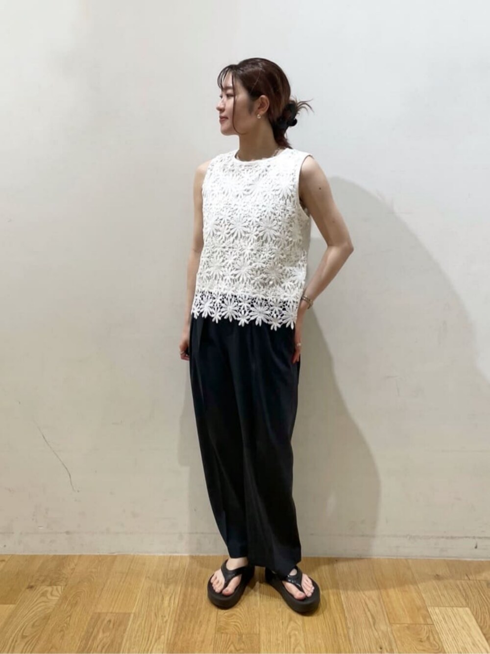【サイズ感】 トップス ぴったり パンツ ややゆったり シューズ 標準的 【コーディネートポイント】 きれいめのブラウスをお出かけスタイルで合わせました! 涼しげなレースのドッキングブラウスは着るだけで爽やかに見せてくれますね◎