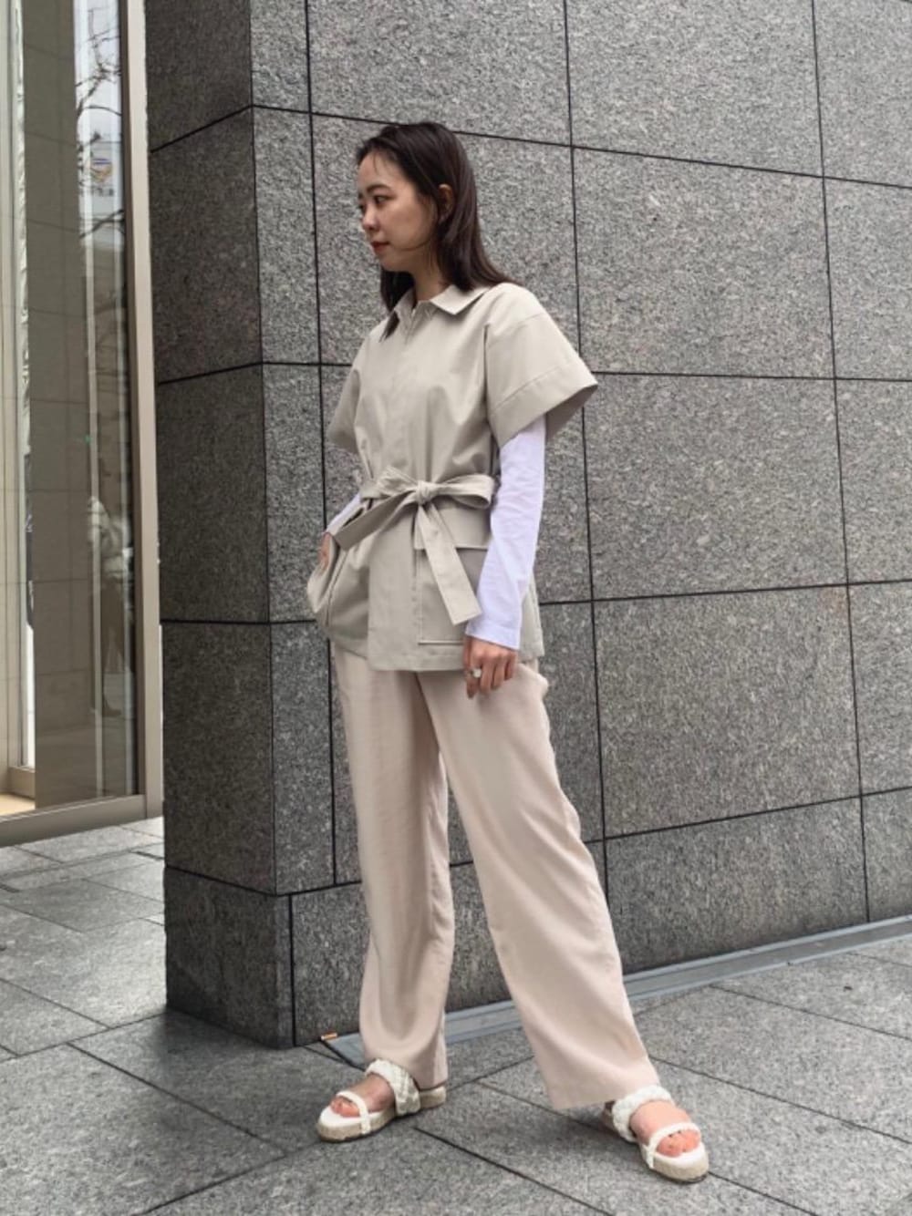 高山里沙のシャツ/ブラウス「<ASTRAET(アストラット)>ベルテッド ステンカラーシャツ」を使ったコーディネート
