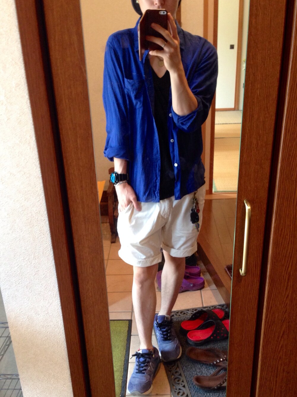 今日の急な雨はビビりましたね(°_°) すぐにやんだからよかったー! アメアパのVネックTシャツはVネックが深くて凄く重宝してます(・ω・)ノ
