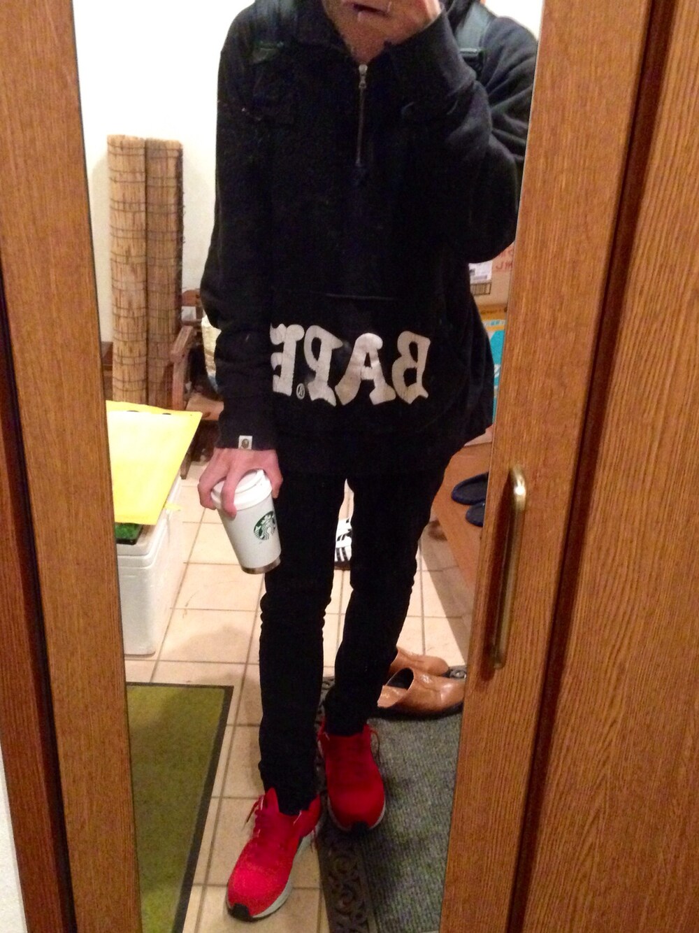 台風がだんだん強くなってきましたね。 明日の大学は休講になるのかな…。 今日はA BATHING APEのパーカー着てVラインを意識してみました^ ^