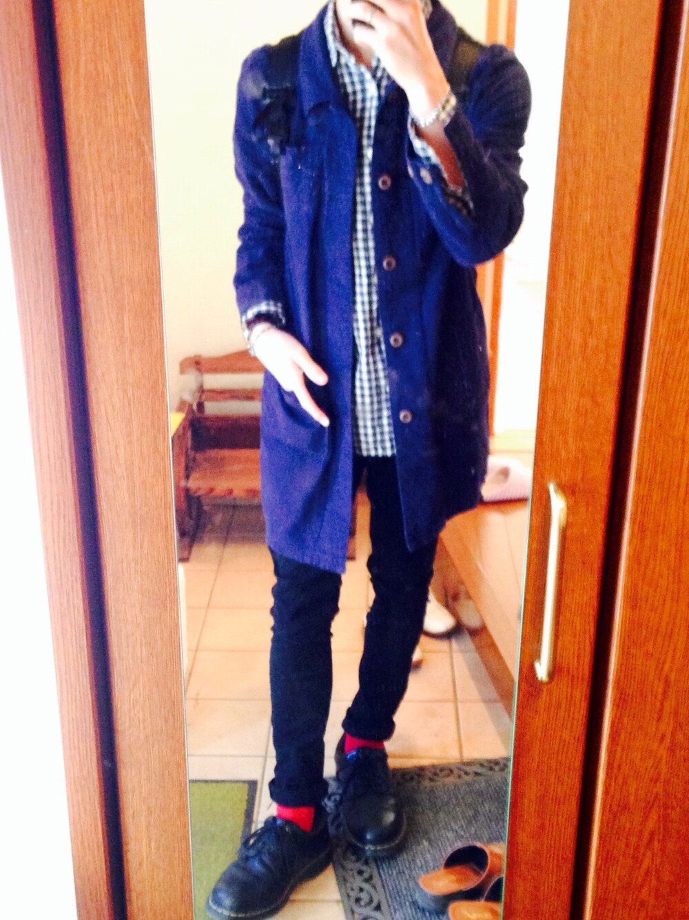 今日は風がかなり強かったなー。 卒業アルバムの写真撮影もあってもう卒業かー、とさみしい思いになるね…。 さてさて、コーデはギンガムチェックにネイビーのトレンチコートきました!