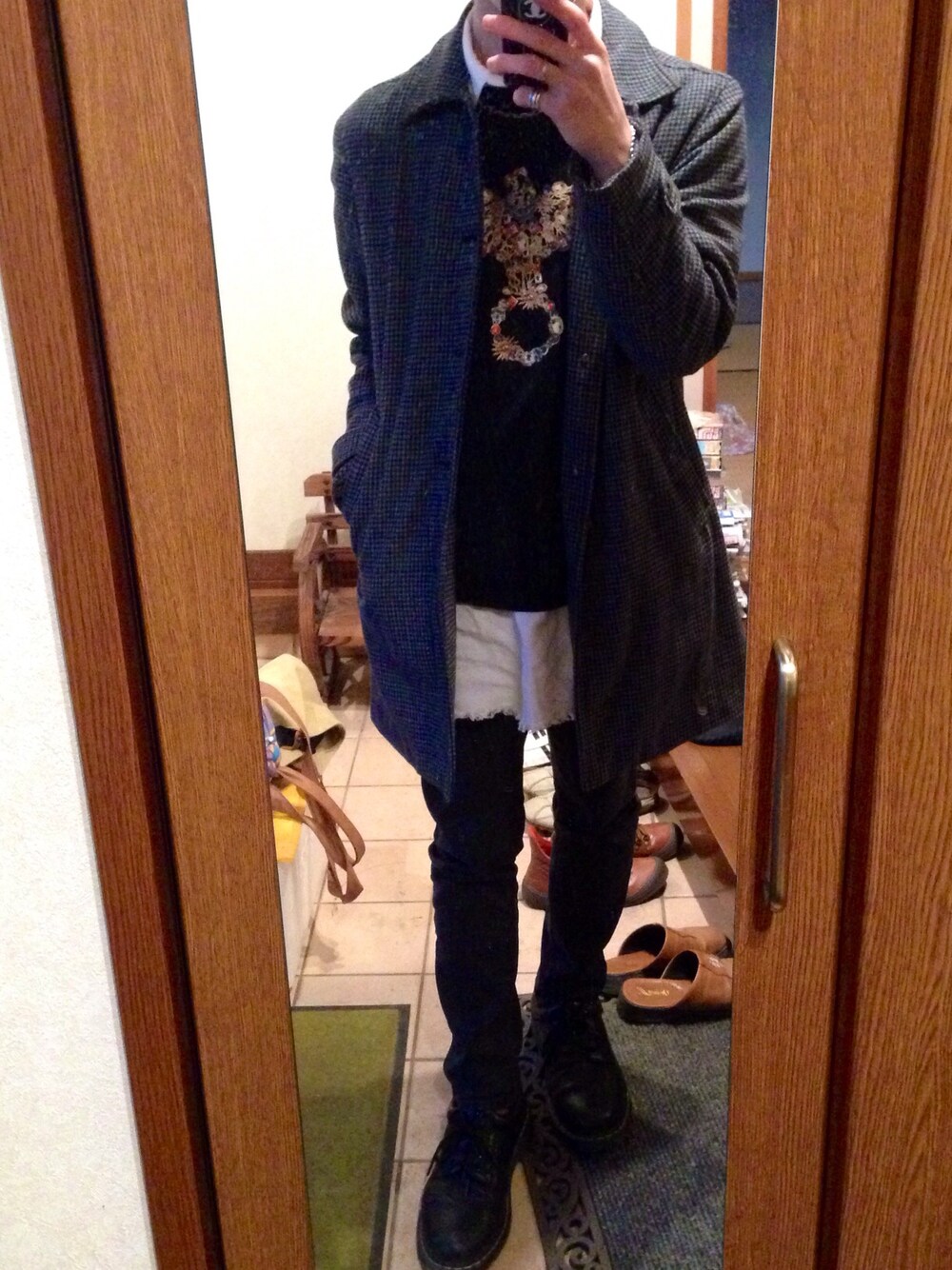 最近本当に冷えますね…。 雪が降ってる地域もあるとか…(._.) そろそろスタッドレスタイヤにはきかえないといけないかな? この日のコーデはちょっと挑戦してみました! ロングシャツ+ロングコートの組み合わせ! 童顔っていつも言われる僕にしては中々大人なコーデにできたかなとw