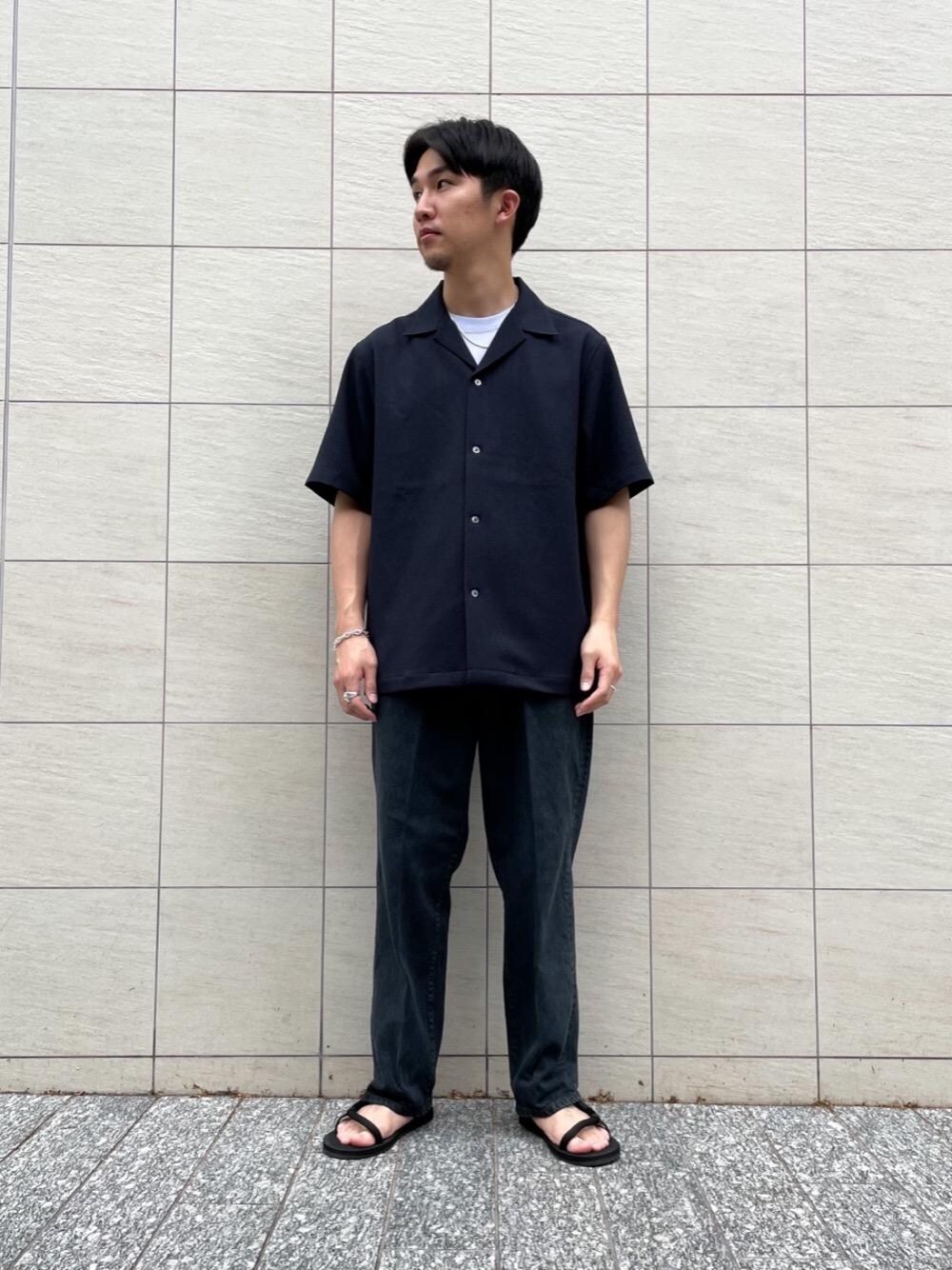 ●身長:168cm ●体重 : 60kg ●普段サイズ : トップス M / ボトムス M /シューズ 26cm 【サイズ感】 トップス : Lでゆったり ボトムス : ジャストサイズでも太め シューズ : ジャストサイズ 【コーディネートポイント】 全体をワントーンで組んでシックな雰囲気にまとめました。インナーはネイビーと相性良しの薄パープルを着てます。夏だからと言って明るい色に限らず、落ち着いた色も使いつつコーディネートを楽しみたいです。