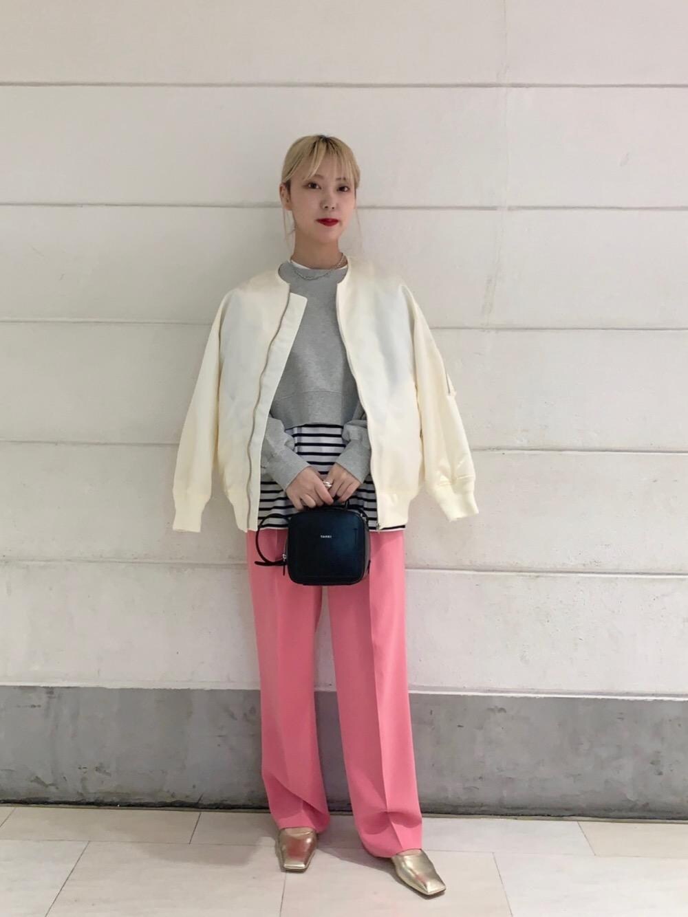 ・年齢:20代前半 ・身長:160cm ・普段サイズ:トップスS/ボトムスS 【サイズ感】 スウェット:身幅、袖ゆったり パンツ:ゆったり 【素材感】 スウェット:コットン100% パンツ:アセテート65% ポリエステル35% 【着心地】 スウェット:アームホールがゆったりめでレイヤードしやすいです。 パンツ:さらっとしていて楽に履いていただけます。 【コーディネートポイント】 鮮やかなピンクのパンツで春を意識したスタイリングです。程よいゆるさがありながらもルーズになりすぎないストレートシルエットなので様々なスタイリングに合わせていただけます。