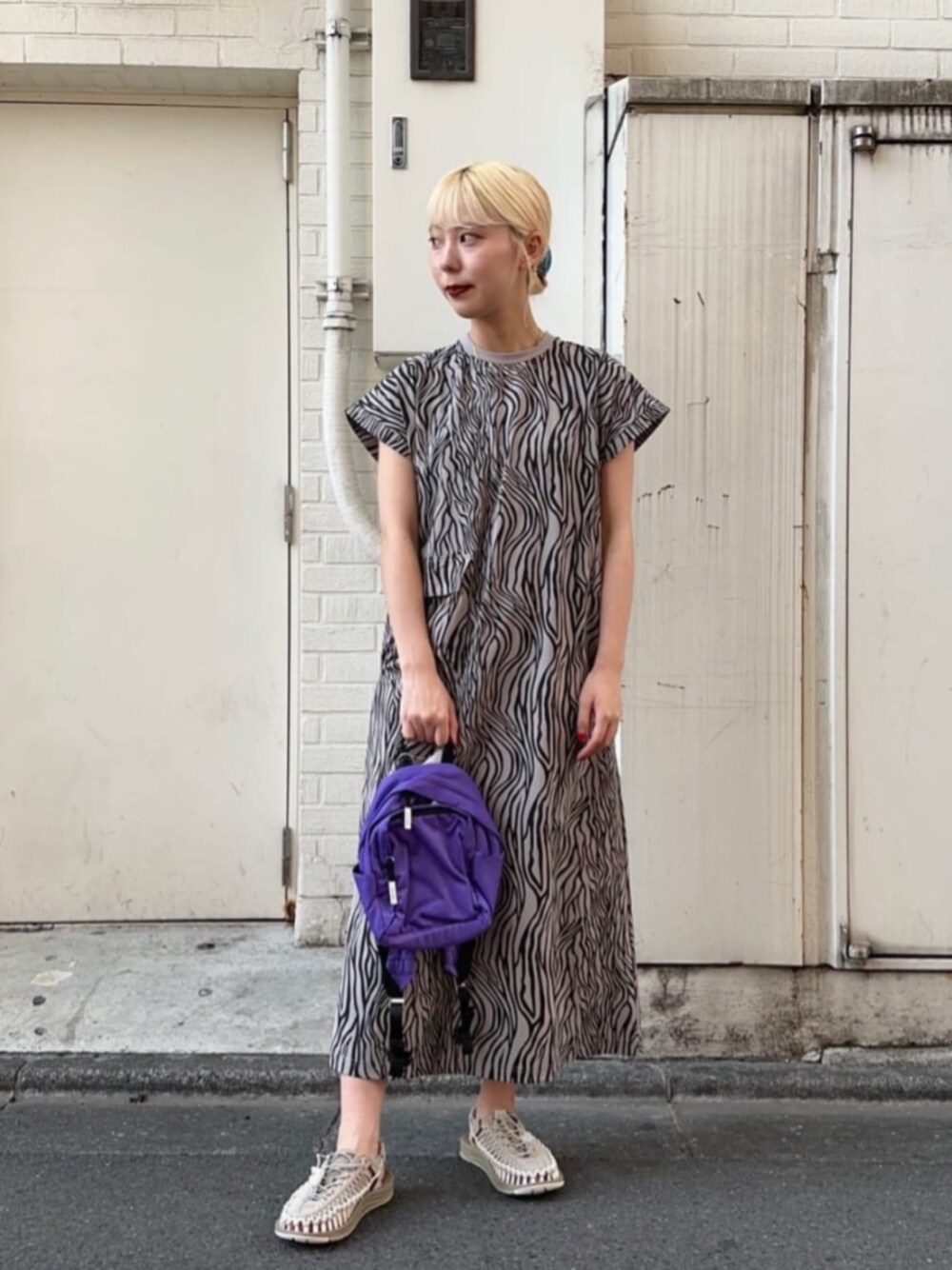 ・年齢:20代前半 ・身長:160cm ・普段サイズ:トップスS.M/ボトムスS 【サイズ感】 ワンピース:ゆったり 【コーディネートポイント】 別注<THOUSAND MILE>のワンピースは手洗い可能で撥水性も兼ね備えた、一枚で様になるアイテムです。鮮やかな〈NOMADIS〉のリュックをポイントに、スポーティなコーディネートにしました。