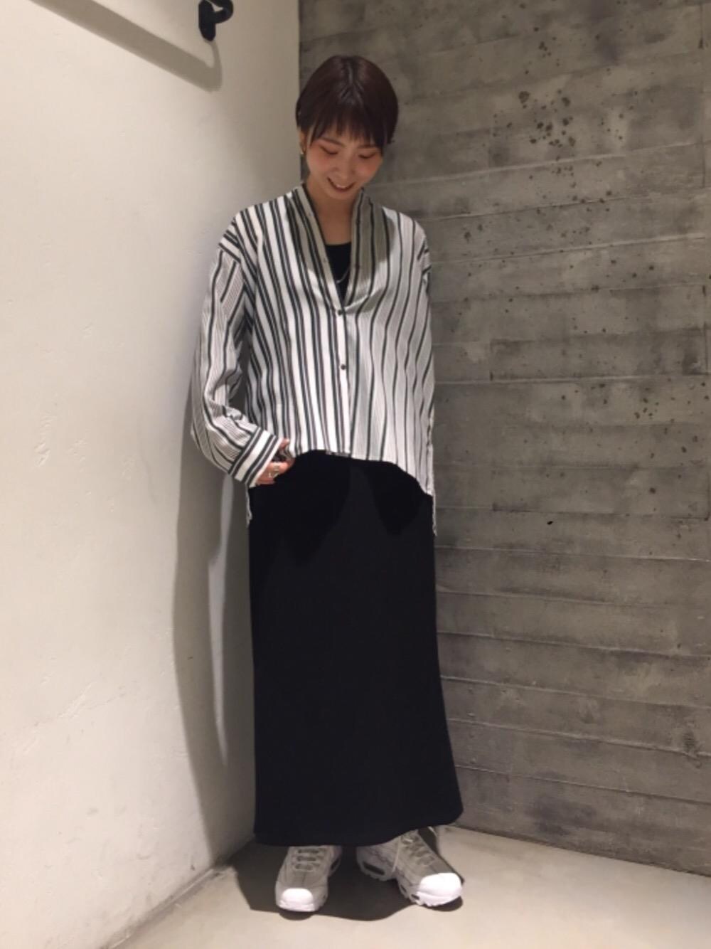タイトスカートにスニーカーあわせで、スポーティーさを加えてみました。