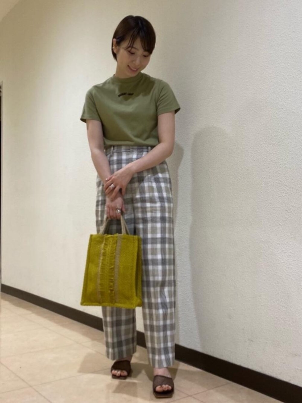 RISAのその他パンツ「BY∴ 麻ブレンドチェックサイドゴムパンツ -ウォッシャブル-」を使ったコーディネート