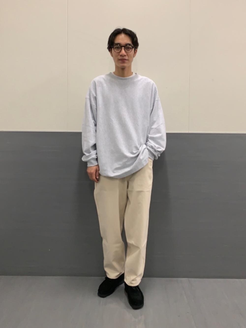 身長:174cm 体重:60kg 普段サイズ:ゆったりとしたサイズ感が好み トップス/L,XLサイズ パンツ/M.Lサイズ シューズ/26.5cm 【サイズ感】 ・トップス:1番大きいサイズのXXLを着用しているため、全体的にかなりゆったりしております。 ・パンツ:全体的にゆったりしておりますが、テーパードが効いている為、野暮ったい印象はありません。 ・シューズ:やや大きめの為、ハーフサイズ下を着用 【素材感、着心地】 ・トップス:ガシッとした素材感です。 ・パンツ:ガシッとした素材感です。 【コーディネートポイント】 野暮ったく見えがちな素材感を、明るい色味にすることでクリーンな印象に見えるように仕上げました。