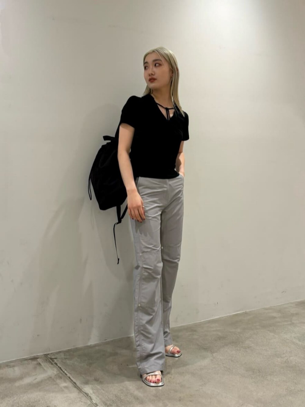【サイズ感】 トップス:通常サイズ、ややフィット感有り ボトムス:通常サイズ シューズ:通常サイズ 【コーディネートのポイント】 カラーを2色でまとめ、シンプルなスタイルにいたしました。
