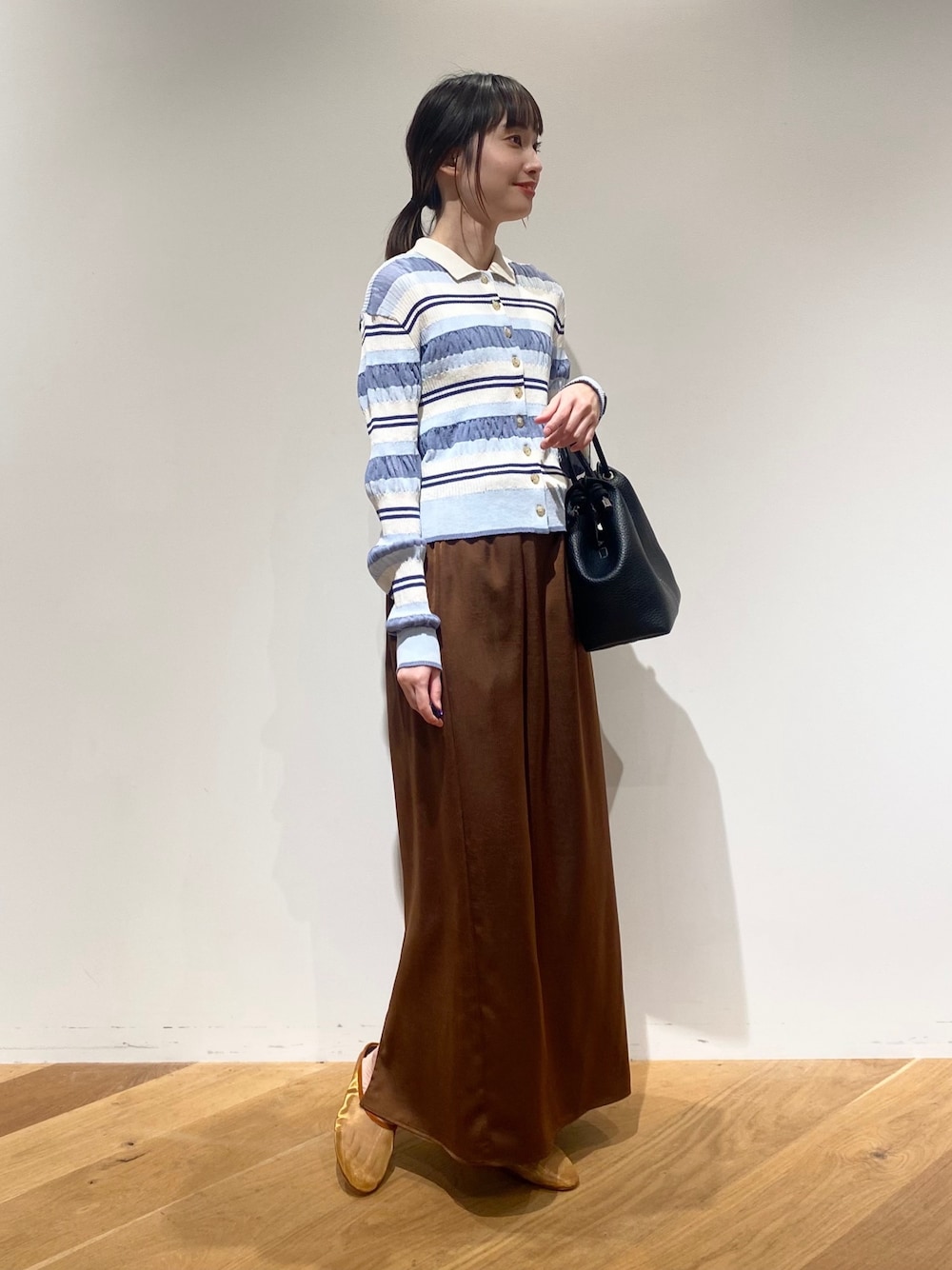 ●サイズ感 ニット 春らしいカラーがかわいい!体の薄さが気になりにくい肉感の生地なので、小柄さんも着やすいニットです❤︎ スカート Sサイズでウエストとスカート丈がちょうどよかったです。 サンダル サンプルのため、普段サイズより大きめのサイズを履いています。 ●コーディネートポイント ブラウン系のスカートを合わせて大人カジュアルスタイルに。襟付きのニットは、首元に奥行きを見せることができ、きれいめな印象も見出してくれる便利なアイテムです。 ●Instagram かわいい×上品の大人フェミニンの着こなしが得意で、たくさんのときめきをお届けしております🎀ぜひチェックしてみてくださいね。 アカウント: sasahara_ua