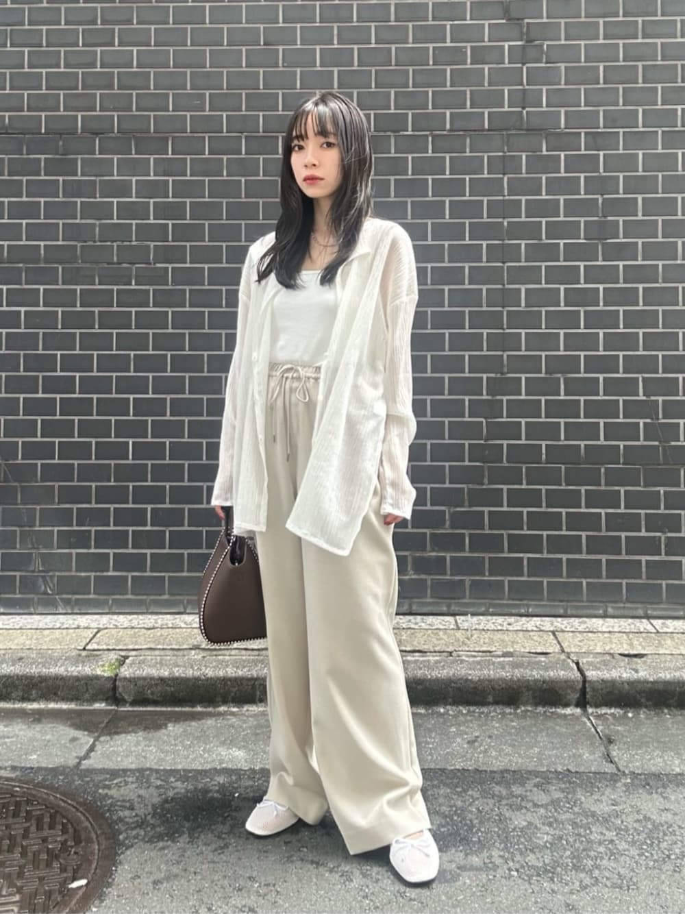 年齢:20代 身長:146cm 普段のサイズ:XSサイズ 【サイズ感】 カーディガン:ゆったり タンクトップ:標準 パンツ:ゆったり。ウエスト調節可能 シューズ:標準 【コーディネートポイント】 夏の通勤スタイルをイメージしてコーディネートしました。 透け感のあるカーディガンは日差し避けにも、冷房対策にもおすすめです。