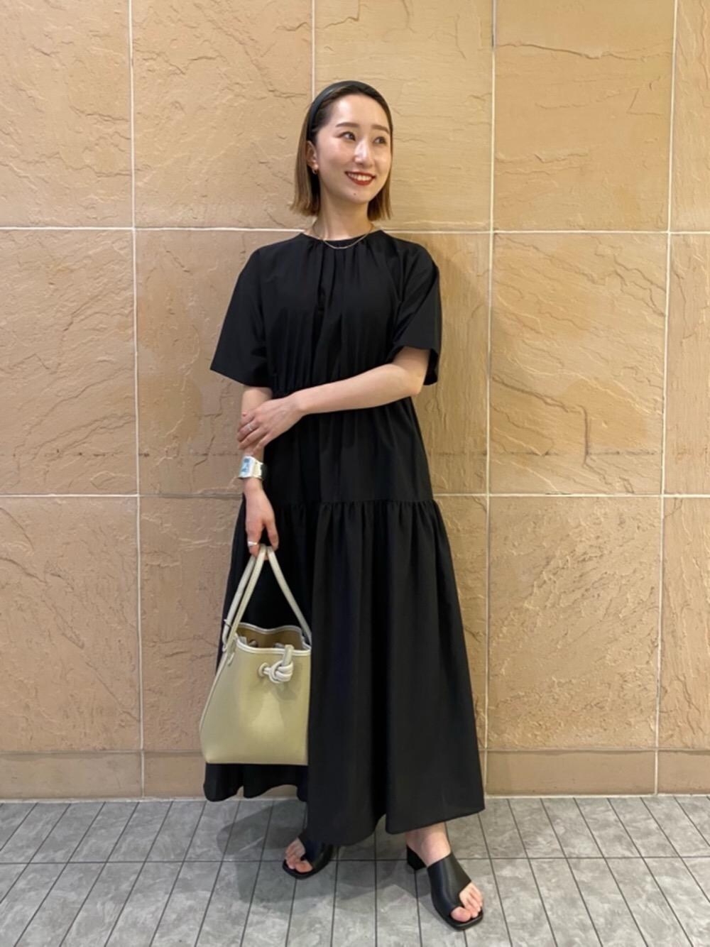 ■身長:154cm ■普段サイズ:ワンピースS/シューズ23.5cm 【サイズ感】 ワンピース:標準的。 シューズ:やや小さめ/普段より0.5cm大きいサイズにしています。 【素材感】 ワンピース:シルク混合のコットン生地/手洗い可 【着心地】 ワンピース:身幅ゆったりで楽な着用感 【コーディネートポイント】 ブラックで統一し、小物で抜け感を出したコーディネートを組みました。美しいドレープ感のあるワンピースは足元や小物次第で変化をもたらしてくれる1着となっております。これから肌見せする季節ですので大きめのアクセサリーと合わせるのがオススメです。