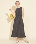 ■身長:166cm ■体型:普通体型 【バックカシュクールマキシワンピース】 華奢なウエストリボンとさり気ないバックスタイルが魅力的な一枚で様になるワンピースです。今回はノースリーブジャケットと合わせて綺麗めな印象に仕上げました。暗めのワントーンコーディネートに〈INSCRIRE〉のビビットピンクのサンダルをポイントに選びました。 着用カラー:ダークグレー 着用サイズ:M サイズ感:ゆったり 素材感:麻ブレンドの涼しげな着心地