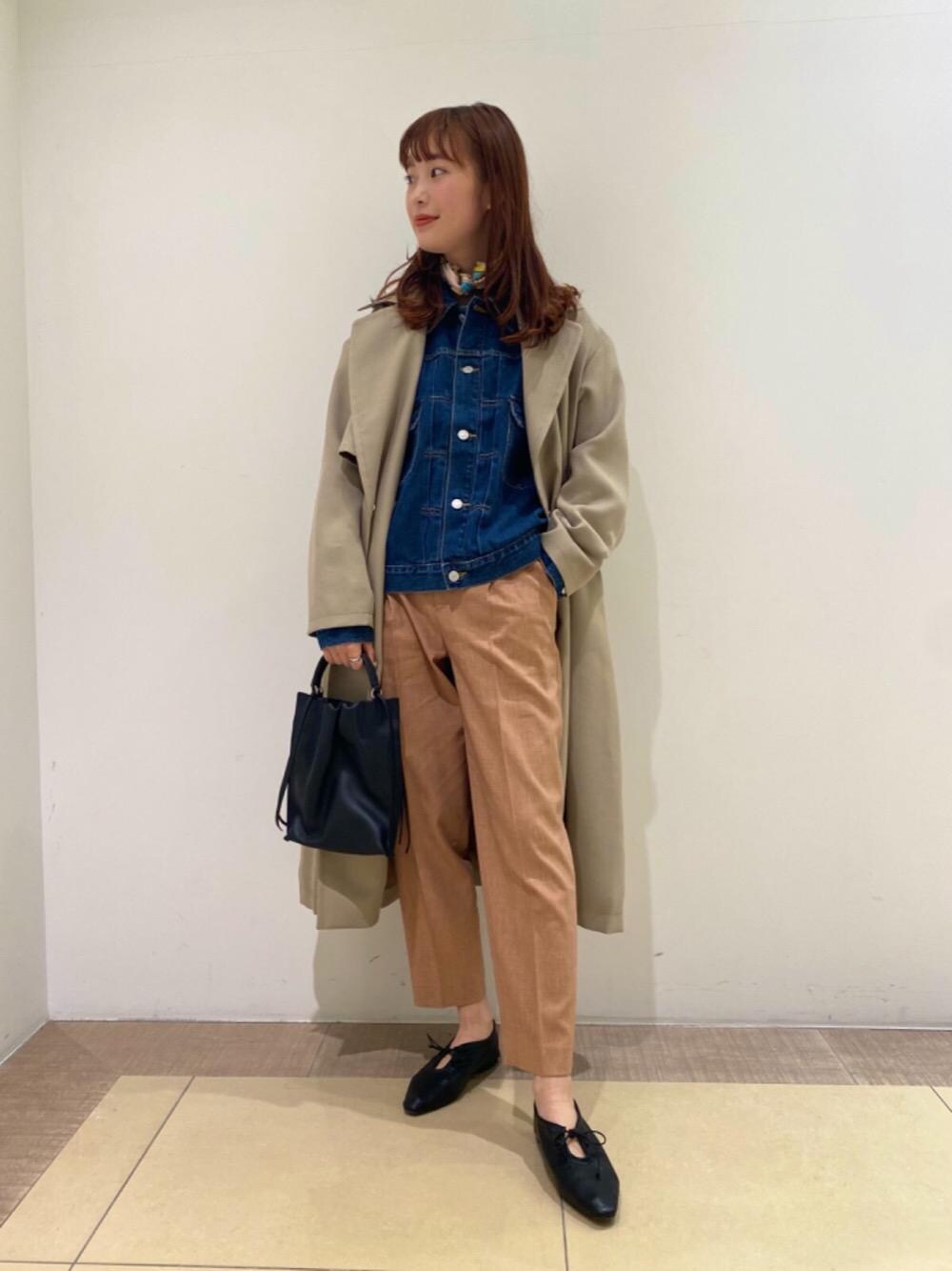トレンチコートにデニムジャケットをレイヤードする事で上級者なオシャレを演出しました。首元のスカーフが差し色になっており、春らしいオレンジのパンツがコーディネートのポイントです。