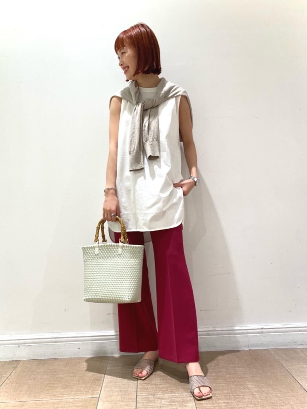●年齢:20代前半 ●身長:161cm ●普段サイズ:ボトムス S/シューズ23.5cm 【サイズ感】 トップス:かなりゆったりしており、丈も長め ボトムス:ゆったりしている シューズ:やや小さめ。特に横幅が華奢なお作りです。 【素材感】 アウター:肌触りの良い柔らかい麻100%です。 ボトムス:さらっとした清涼感のある薄手素材です。 【コーディネートポイント】 パンツが鮮やかな色味なので、他はベーシックな色味を基調としまとまりのあるコーディネートしました。トップスはシンプルなデザインなので、カーディガンを肩掛けでポイントとしております。