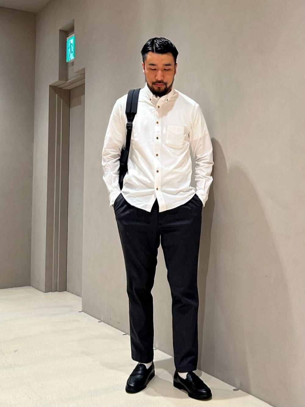 ●体型:175cm/67kg/普通体型 ●普段サイズ:アウター M〜XL/トップス M〜XL/パンツ LかXL/スニーカー27cm <サイズ感> シャツ:ぴったりめ パンツ:腰回りにゆとりがあるテーパード シューズ:普段スニーカー27cmでサイズ8 <コーディネート> シンプルにスタイリングしました。