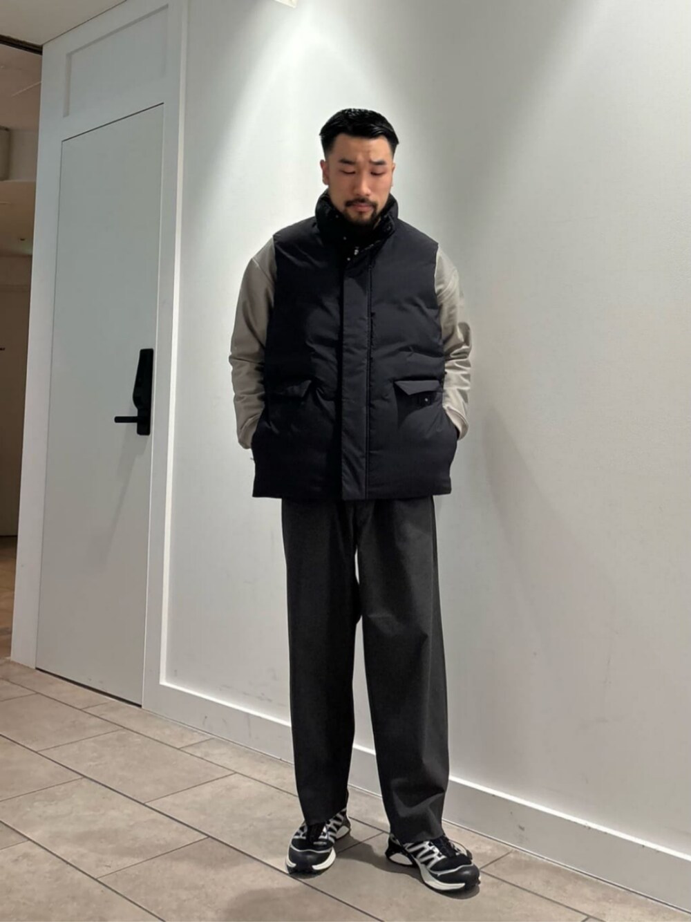 ●体型:175cm/67kg/普通体型 ●普段サイズ:アウター M〜XL/トップス M〜XL/パンツ LかXL/スニーカー27cm <サイズ感> ベスト:ゆったり スウェット:ゆったり パンツ:ワイドテーパード シューズ:普段よりハーフサイズアップ <コーディネート> シンプルにスタイリングしました。