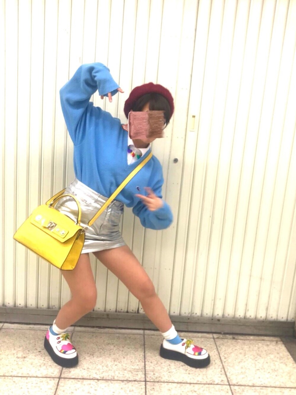 この日は水色コーデ🐋🐳🐬 シルバーのスカートがいつもと違う感じでいいね👍🏼 ベレー帽はその日お友達とお揃いで買ったものでどこのかは忘れました😜💕