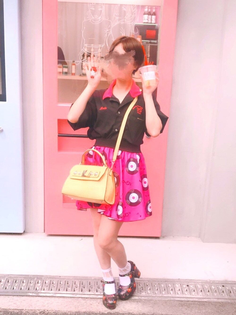 大阪・京都旅行の1日目のコーデ💗🖤💗 このスカート本当は膝下くらいまであって長かったんだけど私の職場のアルバイトさんがお洋服作る学校に通ってるみたいで短くして貰ったの💭🥺💕 ただ切るんじゃなくて写真だと見ずらいけど切ったところを黒の糸で縫ってあってプロって凄いなぁって思った🌱🌱🌱 私の大好きな古着屋さんkikiでこのお洋服セットでコーデされてて可愛い🌸って一目惚れしてそのまま買っちゃった✨けどとっても可愛くてほんとにお気にいり💛