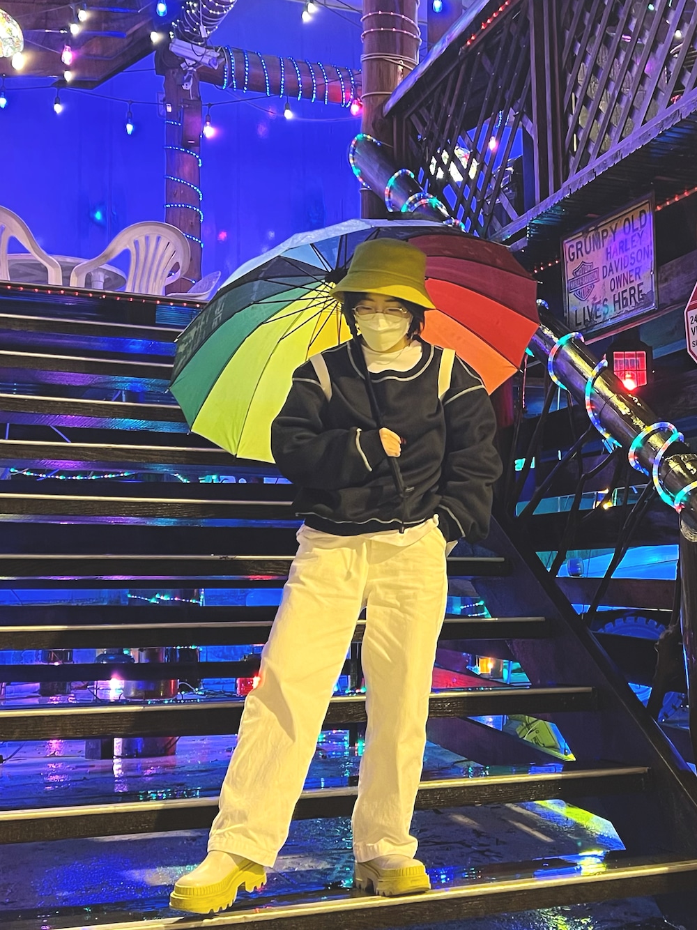 雨☔ これ4月に撮った写真なんだけど、この日めちゃくちゃ寒くて、でもずっとトレーナーとヒートテックで何とかなってたからアウターどうしても着たくなくてちょっとヤバいけどトレーナー2枚着てるウケるよね笑 黒のトレーナーが元々中のインナーとか見せる感じのお洋服で(タグ見てもらうとSHEINで買った時のモデルさん見れます)ダボダボだから全然めちゃ着てるな〜って感じは自分自身はないけど、こうやって見ると太って見えるなぁ笑まぁいいか🙂 WEAR複数画像載せられるみたいで(結構前からだよね)2枚載せてみた👍 雨の日は基本このチャールズ&キースの長靴みたいなブーツ履いてます! 濡れないからマジでいい✨