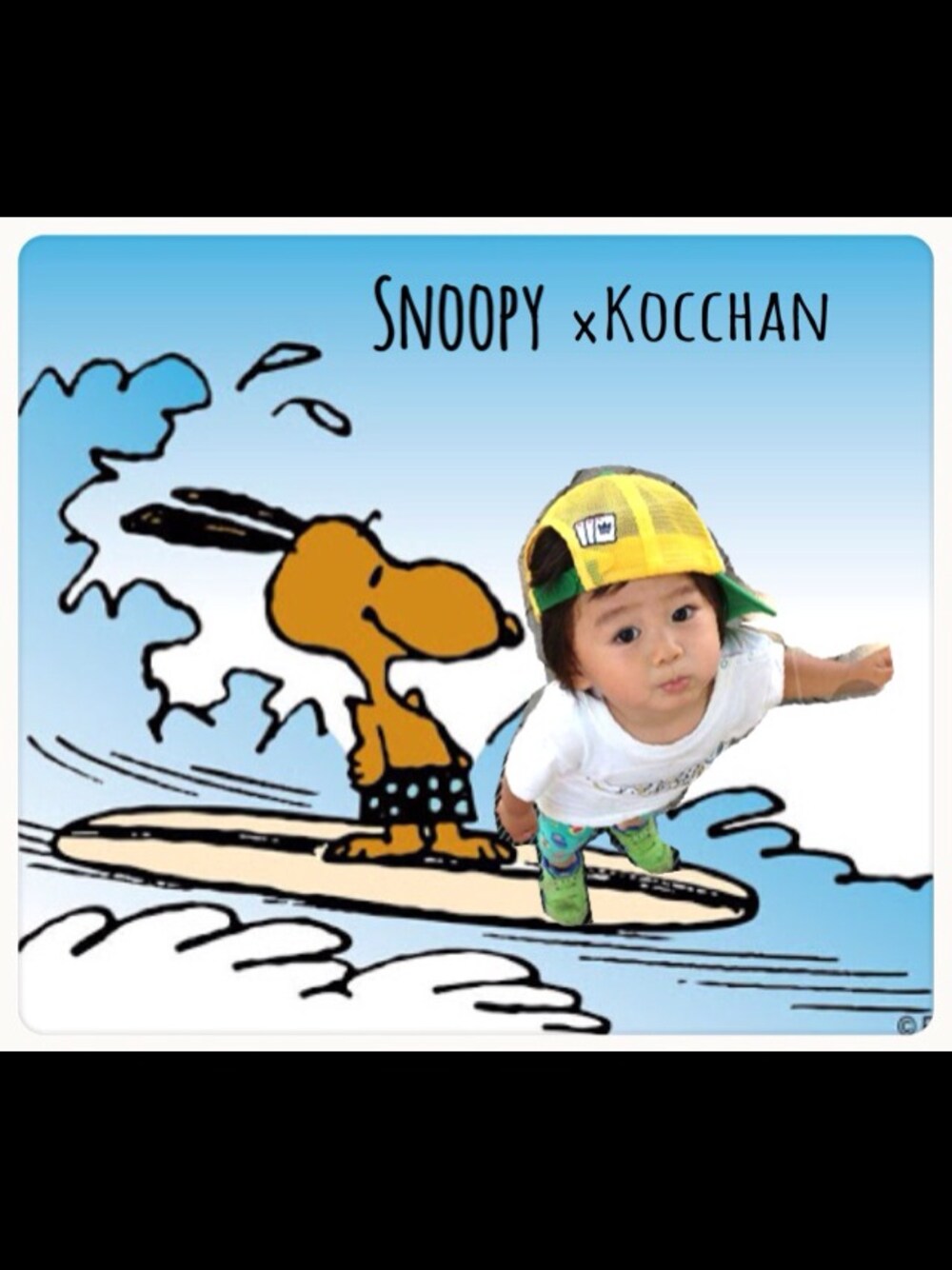 スヌーピーと友達フェス ¨̮⋆ モノクロとうってかわって POPなかんじで⌒✩̋ 1歳の時の写真を使ってみました しかも夏←