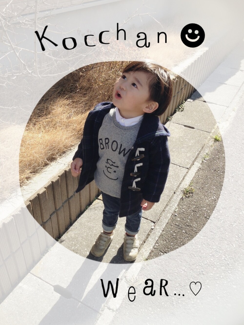 シャツは全部ボタン閉めるのがスキ♡ 西松屋ダッフル80だと思ってたら90だった✯ まだまだ着れそう(´౿`) なんか口元がへん 笑