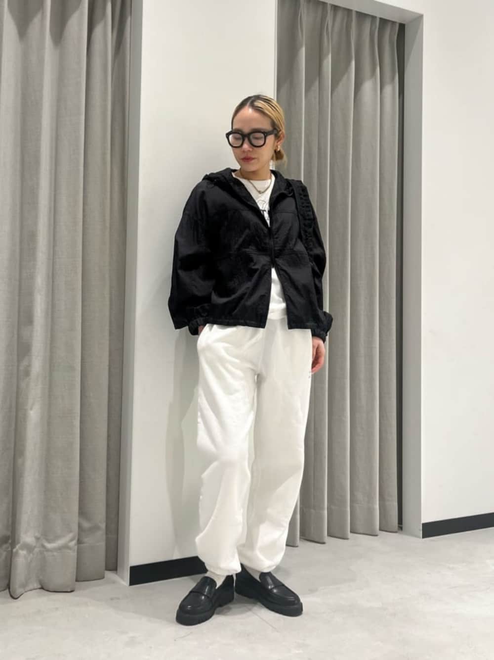 透け感が軽やかなジャケットでモノトーンコーデにしました。 ダブルジップはスタイルアップにも◎ ジャケット:ややゆったりめ、着丈はコンパクト