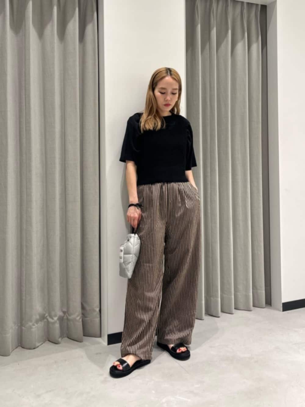 シンプル好きさんにもオススメしたいチェックパンツ。 ラクチンに履けるウエストゴムが嬉しいです◎