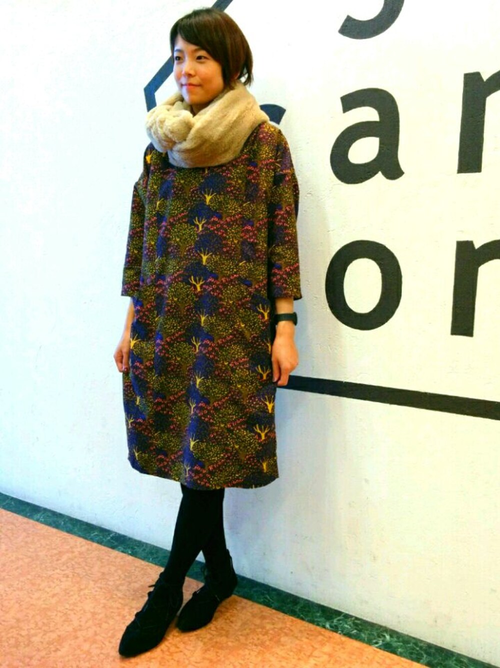 mamecoのワンピース「◆HANAGOMORI柄コクーンワンピース」を使ったコーディネート