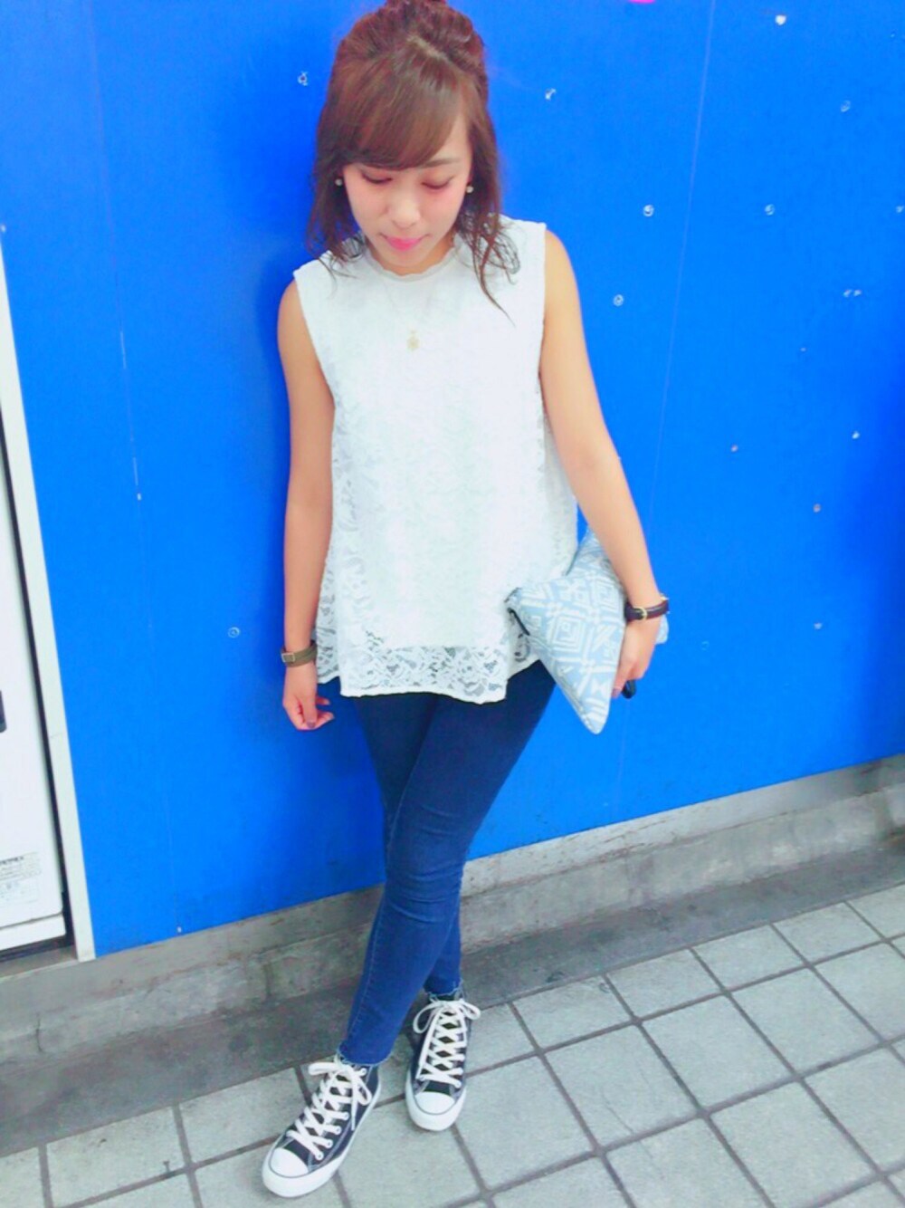 yukoのTシャツ/カットソー「Aラインノースリーブレースプルオーバー」を使ったコーディネート