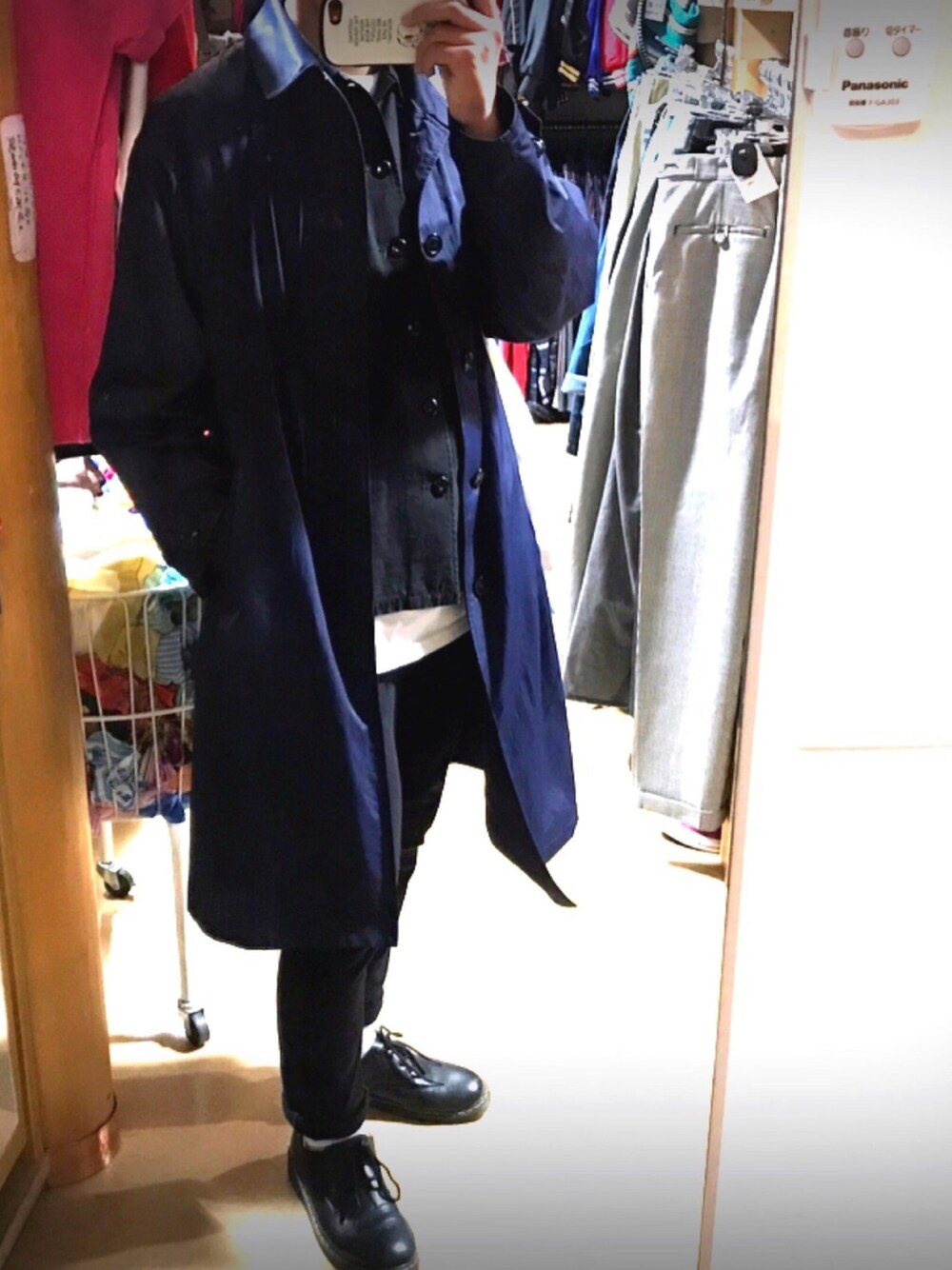 みなさんこんにちわ。 見ていただきありがとうございます! ネイビーのステンカラーコートを使ったコーデです。暗くてすいません🙏 いいね・save・コメントなどお待ちしてます。