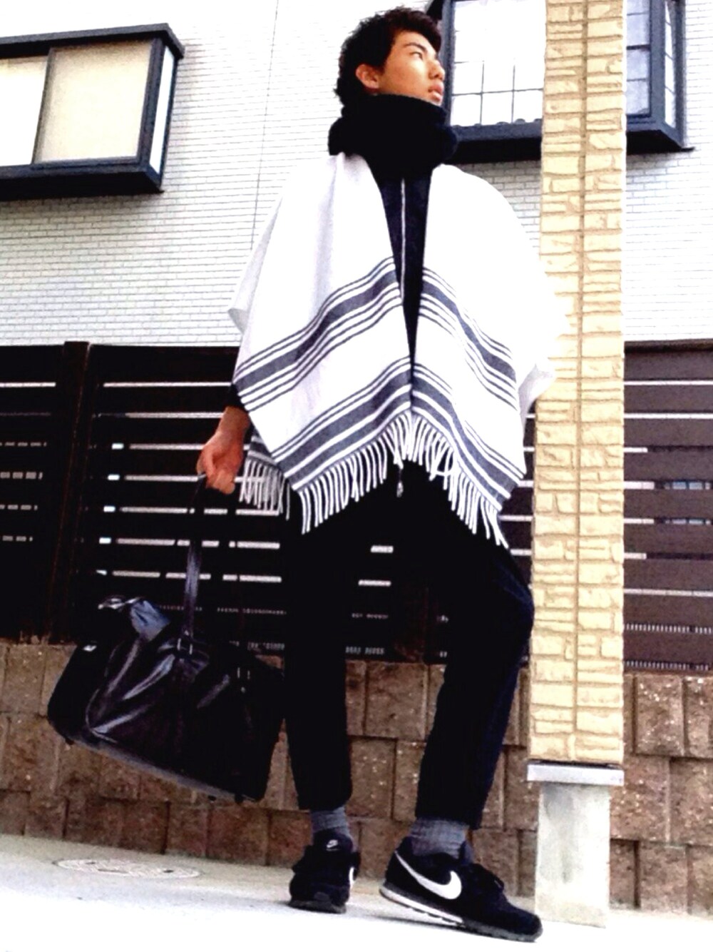 フォロー、いいね、saveお願いします 出来れば更新通知オンも!!!!!!! どーも、 最近、時計がいっぱい欲しい $hu-m@です。 今日は登校する時の服を載せました 別にアメカジに目覚めたわけじゃないんですよ! ポンチョ使ってみたかった だけなんです!笑 でも、色々な巻き方が出来て 以外と便利ですよ👍 ポンチョとったら オールブラックで、靴下で 抜け感だしてます。 アメカジのくせにモノトーン… きもっ、、 コメントでどんどん ディスってください よろしくお願いします。。