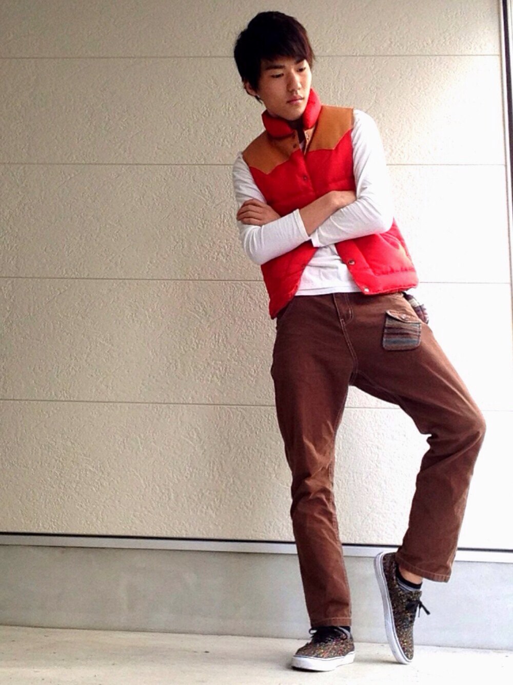 いつも、いいね、save、コメント 有難うございます!! よかったら、更新通知オンに してくださいね! こんにちは、 最近、好みのモード系から 少し離れている しゅーま。です👍 WEARをやっていると 遊びに行く度に更新するので 同じ服を着る服が無いです 少し残念です💦 今日は父に頂いた Houston のダウンベストを着ました! なんだか、大人の男性が していそうなカジュアルスタイル、、、 こーゆースタイルは 初めてだったので合わせるのに 少し時間がかかりました サルエルパンツも久しぶりに 履きましたが、結構good👍 そして、vansのこのスニーカー! 難波のお店で買ったのですが、 アメリカで購入したそうで、 日本ではあまり、無いそうです笑 だから、お気に入りでもあります。 履きたかったから 無理やりブチ込みましたが、 ういてますよね?笑 意識すれば意識するほど ういてるように見える笑 色んな系統の靴を買わなければ、、、 あでぃおす