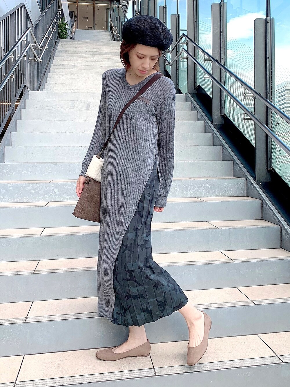 よしよしのワンピース「リブニットライククロス プリーツワンピースドレス/ RIB KNIT LIKE CLOTH/PLEATED ONE PIECE DRESS」を使ったコーディネート