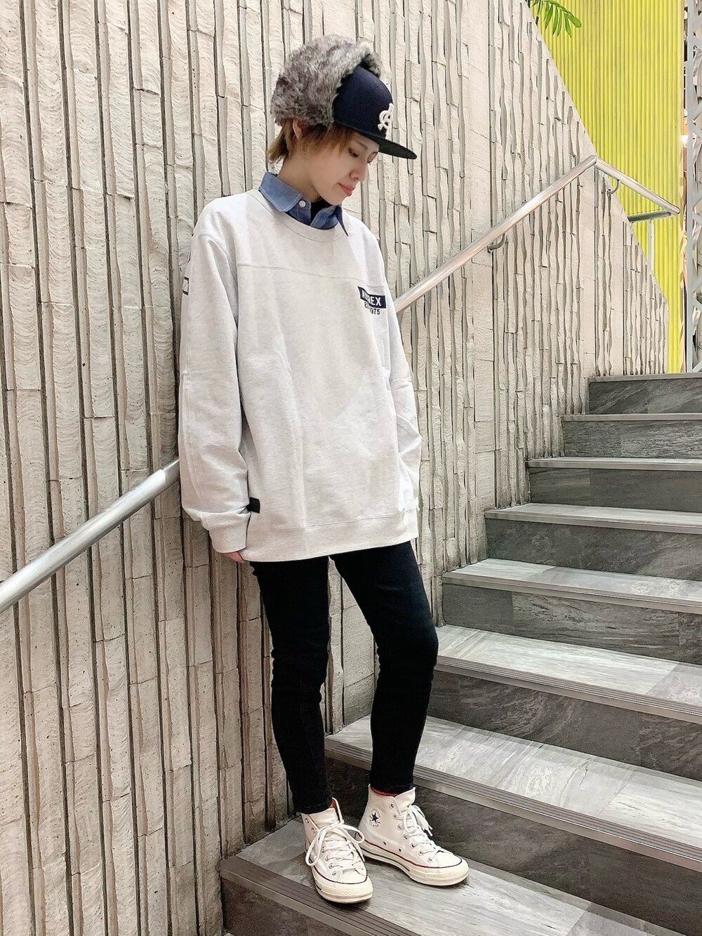 よしよしのスウェット「ビッグロゴ クルーネックスウェット/-BIG LOGO CREW SWEAT」を使ったコーディネート
