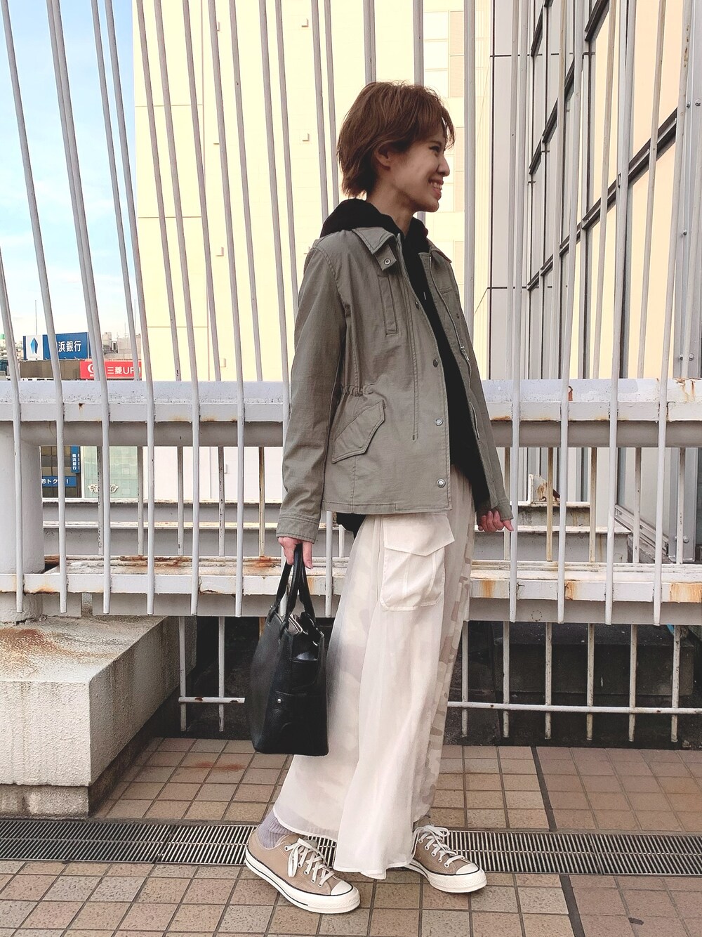 よしよしのミリタリージャケット「バックサテンストレッチ ミリタリージャケット/ BACK SATIN STRETCH MILITARY JACKET」を使ったコーディネート