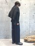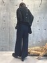 【素材差を活かしたシックなダークトーンシンプルスタイリング】 ブラックコーディネートに 新作のラビウールパンツのネイビーカラーを合わせて、 ブラックワンカラーよりもソフトな抜け感のあるスタイリングにしました。 肩からかけたペルシアモールカーディガンの素材差がポイントになっています。 ラビウールパンツは さらりとした薄手のストレッチウール素材で履きやすく、 生地の表面がフラットな上品なパンツです。 トップスは選ばず、合わせやすいアイテムです。 寒暖差のある時期におすすめです!