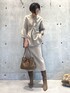 優しい印象のベージュワントーンコーディネートです。 ラクレジャージーシャツとスカートをセットアップでコーディネートしています。 上質なウールなので、肌触りが滑らかで軽い着心地です◎ ブラウンのバックとブーツでメリハリを出しています。