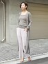 2023Spring Collection Chaosならではの淡いモーヴピンクとグレーのカラーが 春らしいスタイリングのご紹介です! 新作のシーブストフレアパンツのモーヴピンクとのコーディネートが新鮮で春の気分を盛り上げてくれるスタイリングです。 シルクコンシリーズの新型のリブシリーズが入荷しました。 厚手のリブが体のラインを拾いすぎず、キレイに整えてくれます。 シルクコンシリーズは私もセットで持っていますが、今年の新型はお手持ちのシルクコンシリーズに合わせられるように色を合わせて作られています◎ ぜひお手持ちのアイテムとのコーディネートも楽しんでみてください。
